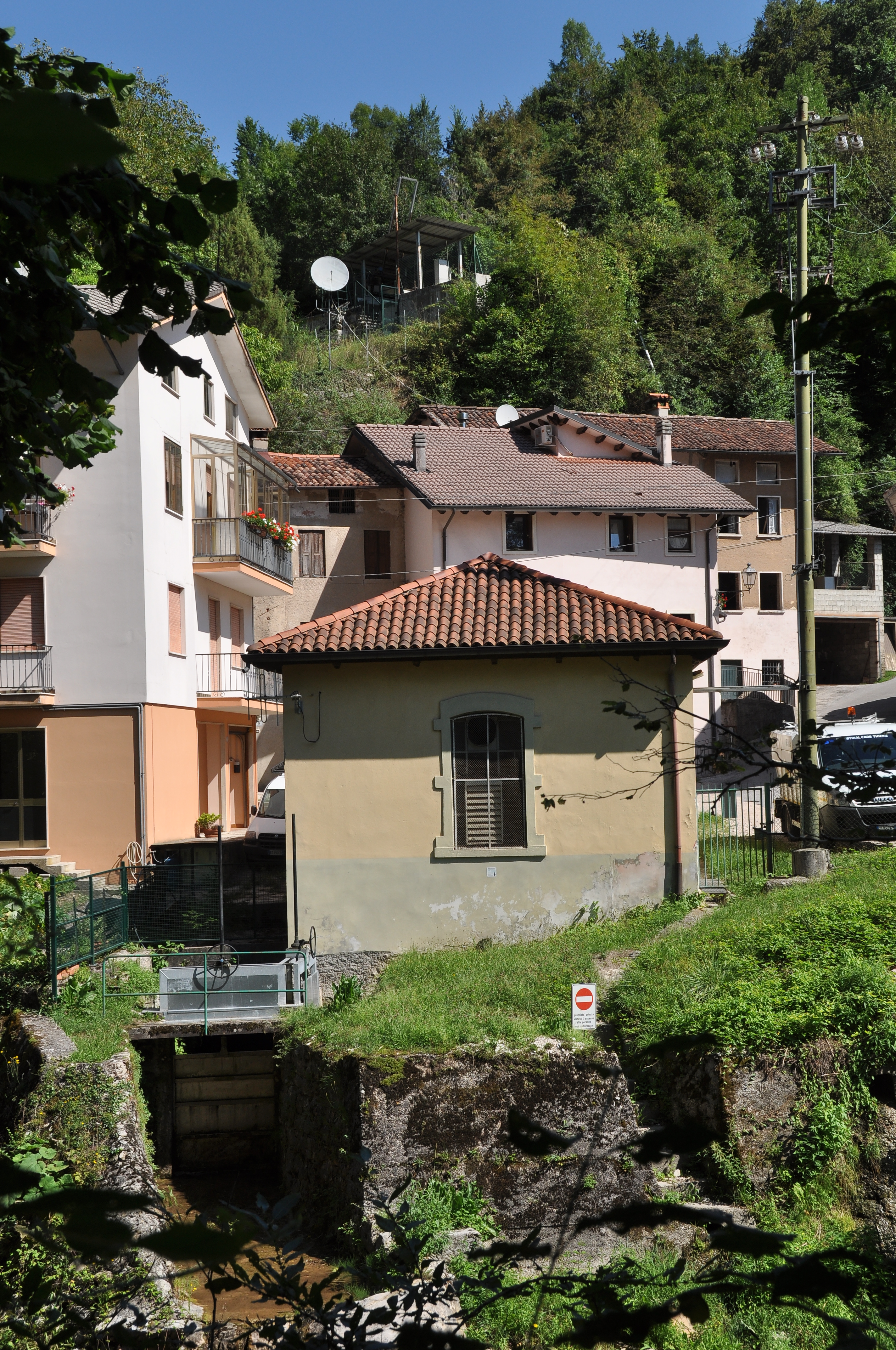 Having purchased the water rights also from the sawmill, Marzotto submitted a project in 1896 to rearrange the entire trunk into a single branch. The intake works were planned downstream of the Ponte dei Facchini bridge, from where a canal of over 1110 meters (partly suspended on fine round arches) would be used to convey the waters to a small loading tank (about 20m3). A 53-meter-long pipeline would eventually lead them to feed a turbine located in an engine building in the Righellati district.